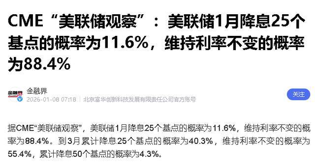 鲍威尔的态度很谨慎,多次说要“仔细看经济数据”,显然不想轻易降息。现在市场觉得1月降息的可能性只有2.8%,之前还有11.6%,高盛预测,1月大概率不会动。
