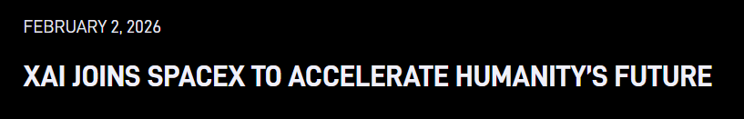 当地时间2月2日,太空探索技术公司(SpaceX)在官网发布由马斯克署名的声明,确认与人工智能企业xAI公司合并。声明称,合并后公司将整合人工智能、火箭、天基互联网、移动设备直连的通信。据报道,合并后公司预计每股定价约527美元,估值将达到1.25万亿美元。(界面)