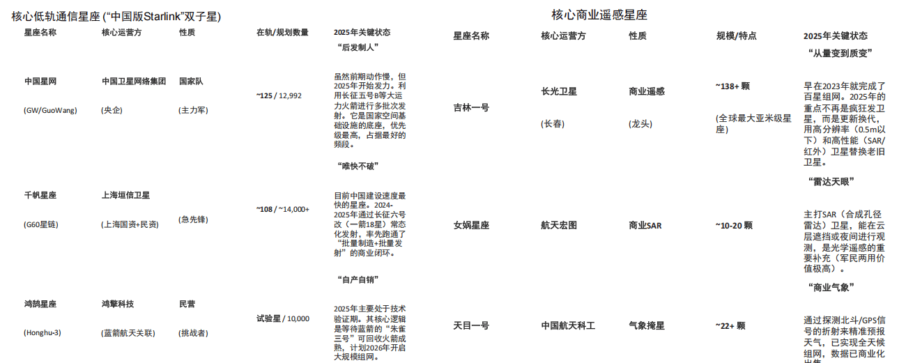 中国的卫星星座格局已经非常清晰,形成了 “国家队领衔(中国星网 (GW) )、地方/民营梯队突进(千帆星座 (G60))” 的双引擎格局;
