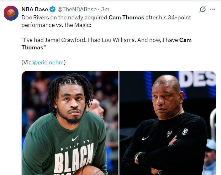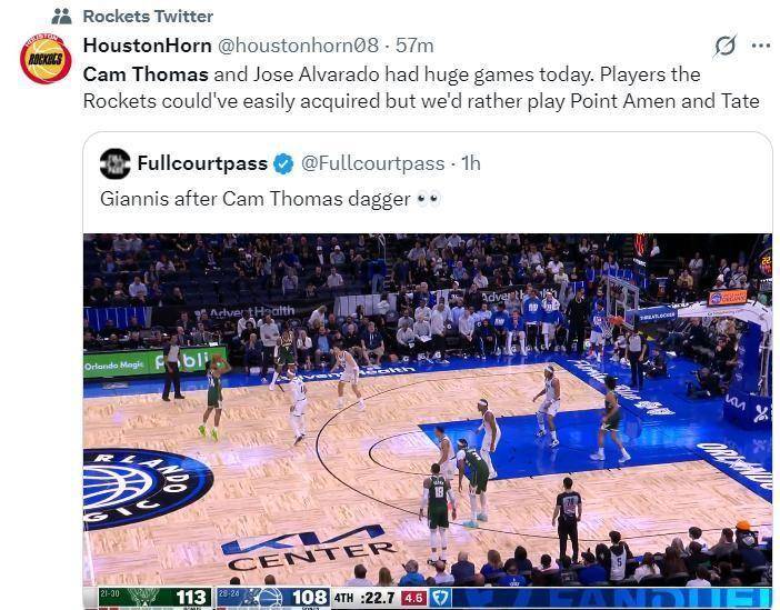 魔术那边贝恩今天也拿了31分,但托马斯的34分更抢眼,他不仅得分多,效率还高,线%,这种表现放在任何球队都是核心级别的。休斯顿的媒体赛后直接转发了托马斯超远三分的视频,说原本火箭有机会签下这样的得分手,但乌度卡更愿意用阿门、泰特这样的防守者,不愿意签得分手。