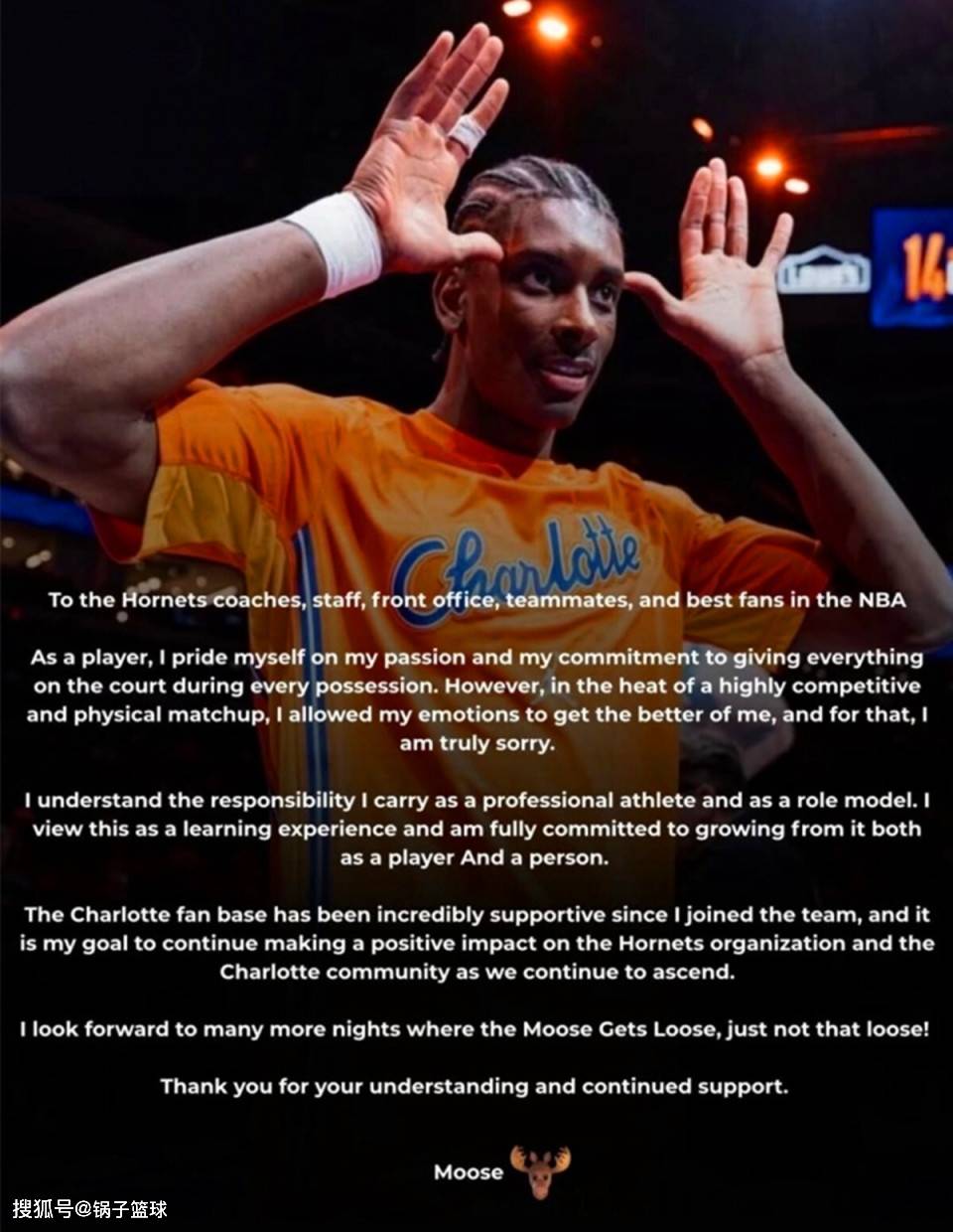迪亚巴特更是发布长文向教练组、工作人员、管理层、队友以及NBA球迷进行了道歉,保证自己不会再如此失控。