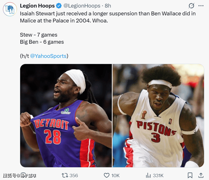 但也有人为斯图尔特发声,美媒Legion Hoops就感叹斯图尔特比当年奥本山宫殿事件中的本-华莱士被禁赛的场次还多。