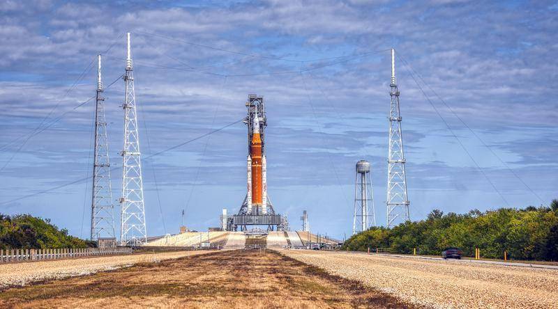 佛罗里达州肯尼迪航天中心39B发射台,阿尔忒弥斯2号的太空发射系统火箭和猎户座飞船整装待发。 IC Photo