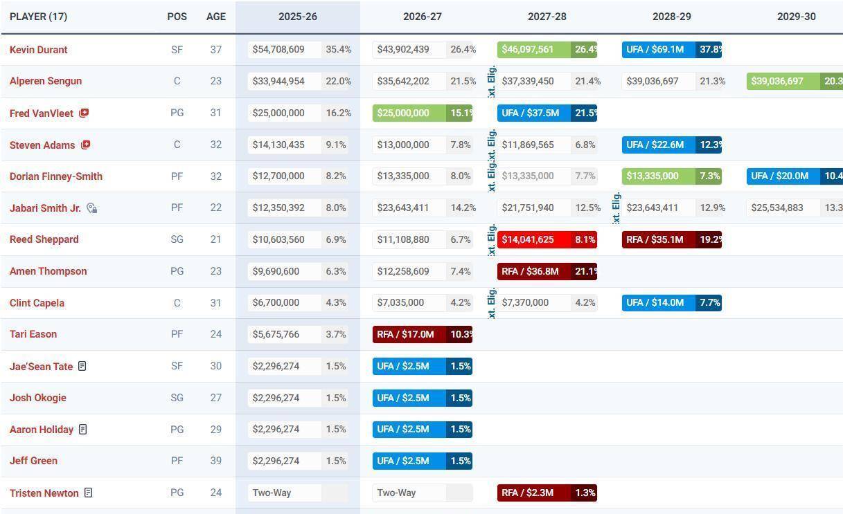 拉斐尔·斯通在交易截止日后的新闻发布会上,用一句“我们没有必要为了改变而改变”来解释球队的按兵不动。这句看似保守的表态,背后是火箭队面临的现实枷锁与长远算计。根据薪资网站Spotrac的数据,火箭队的总薪资已经触及了NBA规定的第一土豪线,这给他们带来了硬性的工资帽限制,剩余的可操作空间仅剩下大约120万美元。这意味着任何一笔交易,火箭都必须送出几乎等额的合同来匹配薪资,而队内能满足这一条件的球员寥寥无几。