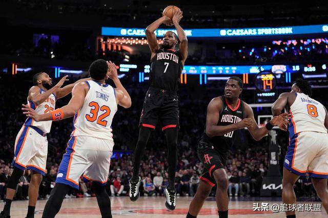 末节,芬尼-史密斯捡篮板上空篮得分,随后尼克斯疯狂反扑,唐斯、沙梅特、阿尔瓦拉多接连命中三分,唐斯隔扣小贾,布里奇斯补扣,尼克斯一波16-4瞬间追到6分;伊森罚球止血,布伦森关键时刻连续得分,比赛还剩1分19秒尼克斯追平比分,决胜1分钟,申京大帽阿尔瓦拉多,杜兰特撞翻布伦森吃到进攻犯规,布伦森高难度后仰中投,杜兰特中投打铁,小史密斯错失三分,杜兰特只能采用犯规战术,阿奴诺比两罚全中,比赛还剩1.4秒杜兰特三分续命,沙梅特两罚一中,杜兰特错失三分绝杀,最终尼克斯在主场击败火箭。