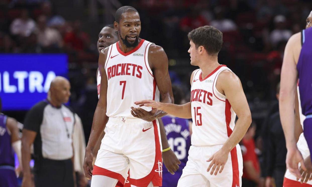 比赛过程气人得很。第一节火箭还落后6分,第二节突然爆发33比26反超,第三节继续压着打37比22,三节结束领先18分。那会儿不少人已经在提前庆祝了。Durant全场拿30分,带队打得顺风顺水,Sengun在内线传球准,年轻后卫三分也投得开。