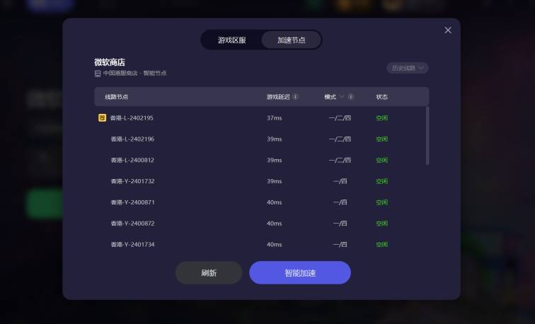 如果加速效果不理想的话,可以手动切换加速节点,在加速页面的【加速节点】中就可以修改,小编建议使用延迟较低的节点进行加速。