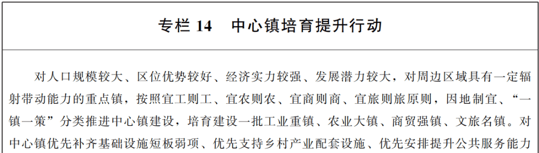 顺应农民向县城集聚共性趋势,尊重县城发展规律,统筹县城生产、生活、生态、安全需要,优化县城、镇村规划布局,培育发展中心镇。分类推进以县城为重要载体的城镇化建设,因地制宜补齐县城短板弱项,增强产业和人口集聚能力,建成一批各具特色、富有活力、宜居宜业的现代化县城,促进农业转移人口就近城镇化。培育发展特色优势产业、稳定扩大县城就业岗位,完善市政基础设施、夯实县城运行基础支撑,强化公共服务供给、增加县城民生福祉,加强历史文化和生态保护、提升县城人居环境质量,提高县城辐射带动乡村能力、促进县乡村功能衔接互补。支持人口持续减少的县转型发展,促进人口和公共服务资源适度集中。引导特色小镇规范健康发展。以人口规模较大、城镇化率较低的县为重点,实施潜力县城镇化水平提升行动,坚持以产兴城、以城促产、以业聚人,构建产业梯度布局、人口就近就业的良性互动格局。