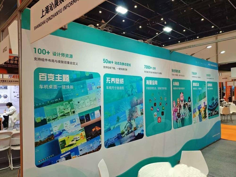 在车载智能供应商布丁UI的展位上,布丁UI总监彭婷告诉虎嗅汽车,他们从电视应用商店转来做车载应用,与五菱、长城有合作,主要做壁纸商城和主题应用。有一手设计师和开发者资源,有8年行业经验,UI做得很漂亮,但问题来了。