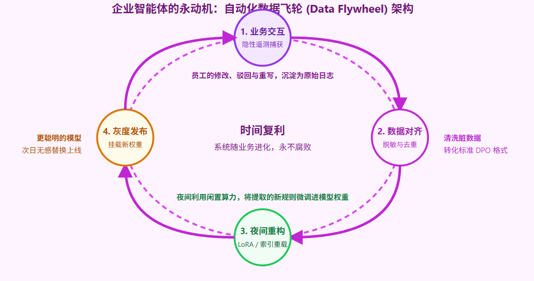 这种格式的数据,正是当前大模型前沿微调技术DPO(Direct Preference Optimization,直接偏好优化)最完美的燃料。它不仅告诉了模型正确答案是什么,更通过(Chosen Rejected)的数学梯度,明确地告诉了神经网络:“人类更偏好这种逻辑路径,你要抑制那种导致 5000 元的错误推演。” 这种高质量的业务隐性反馈,每天都在企业的日常运转中海量产生。