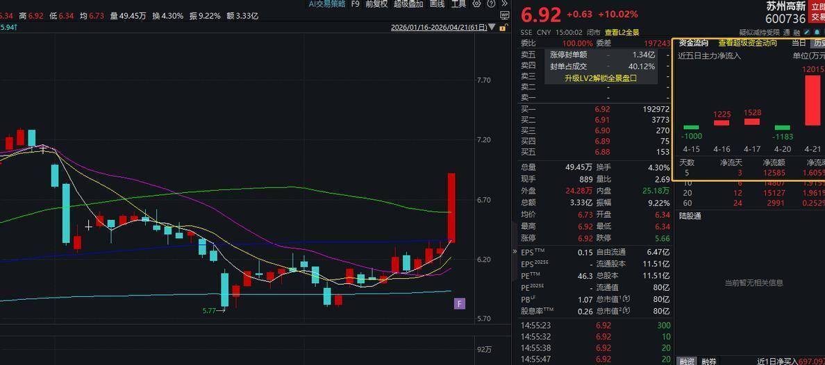 让我们再来看看它的盘子。目前股价在7元左右,总市值大约为80亿元。在动辄几百上千亿的航天军工板块中,它只能算是一个“小个子”。但是,这种“小个子”在行情到来之时,往往能够跳得最高,因为拉升所需的资金较少,弹性自然更大。最近五个交易日,它有三天都受到了资金的疯狂抢筹,净流入额超过1亿元,这绝不是散户能够办到的。更重要的是,它足够便宜。与那些已经翻了几倍、市盈率高得离谱的概念股相比,7元左右的价格,让许多资金都觉得“还有得玩”。