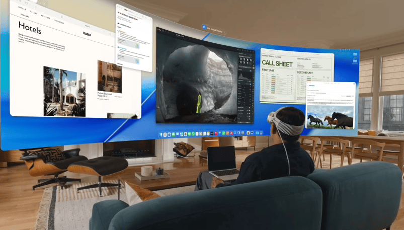 2023年6月苹果在WWDC上正式发布Vision Pro头显。在产品发布会上,苹果首席执行官蒂姆·库克表示:“你的周围环境变成了一块无限的画布……Vision Pro将数字内容融入我们周围的空间。它将带领我们进入空间计算的世界。”
