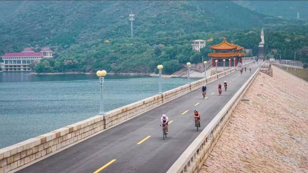 10月12日,2025年“她铁”粉色铁人三项挑战赛暨北京昌平铁人三项赛在十三陵水库开赛,吸引了来自中国、美国、德国等十个国家和地区近600名铁人三项爱好者参赛。(昌平区融媒体中心供图)