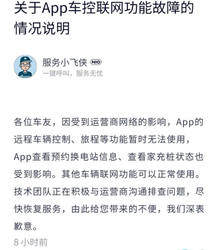 想想之前特斯拉的APP打不开事件,让人不禁怀疑,忘续费这种事是不是发生了人传人现象。不过蔚来和小鹏迅速反应,查明了问题是由中国移动物联网卡网络故障引起的,随后发现受害者还有同样装了该物联网卡的特来电充电桩。