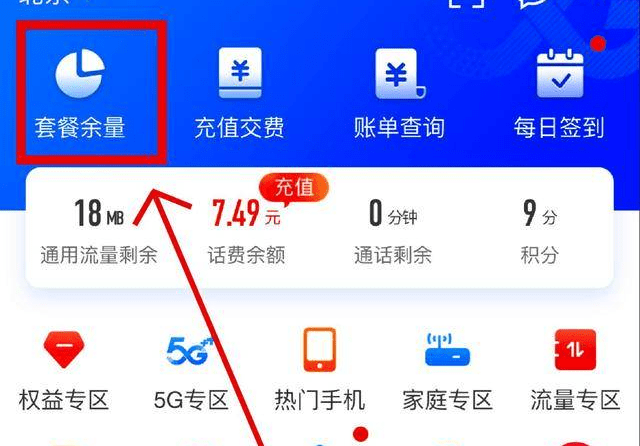 在手机应用商城中搜索下载中国移动app,登陆后在首页的左上角有一个套餐余量,点击进去就可以方便快捷地查询到当前流量的使用情况。
