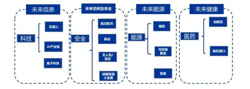 根据工信部对未来产业的谋划部署,“十五五”期间资本市场重点关注以下四大方向的产业机遇:未来信 息、未来空间及安全、未来能源、未来健康。