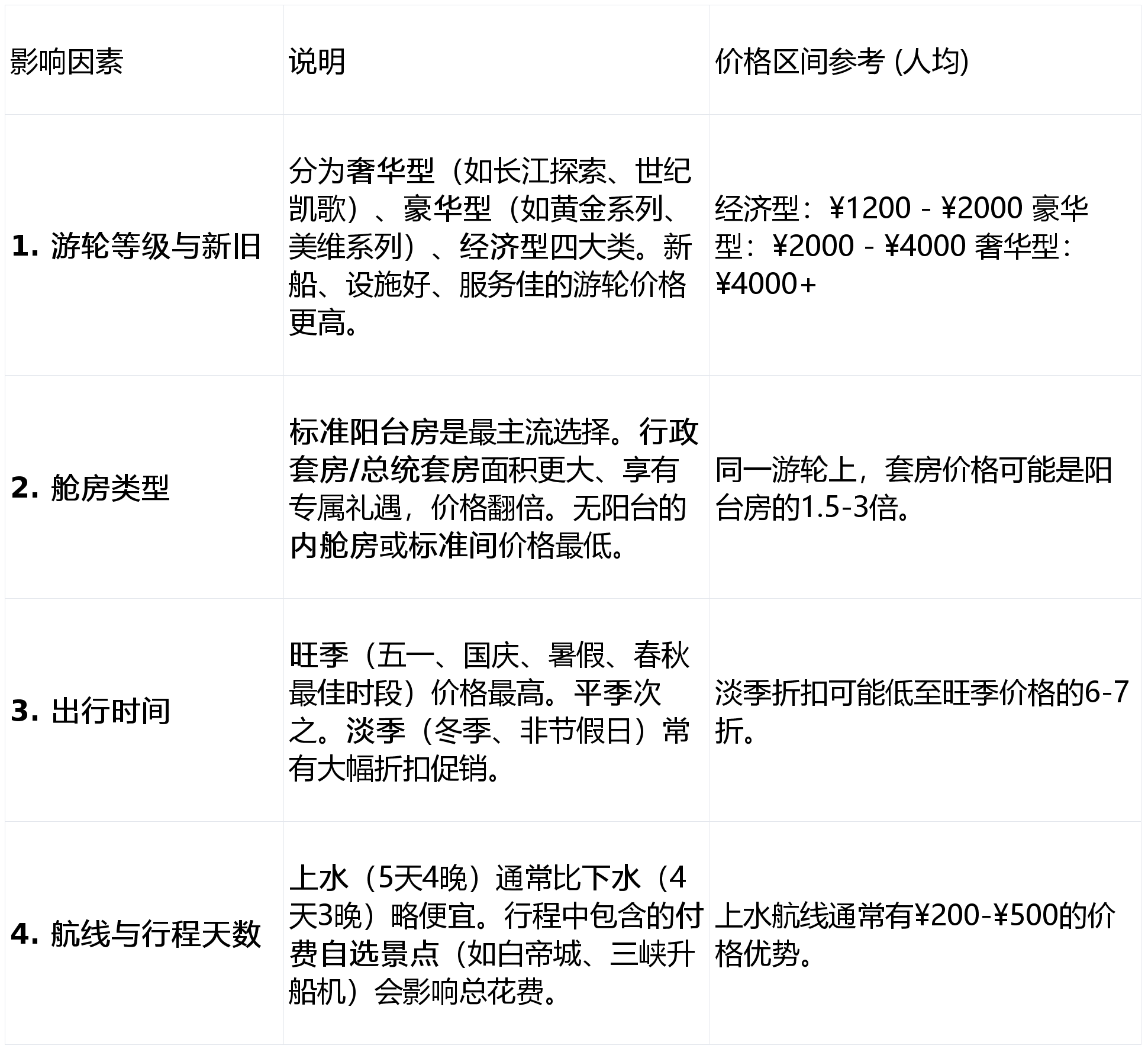 省钱贴士:关注大型旅行社的早鸟预售(提前2-3个月预订)和尾单特惠(出发前7-15天)。海峡国旅等机构常能打包提供“游轮+重庆/宜昌住宿+接送”的优惠套餐,并赠送景点门票或接送服务,综合性价比更高。