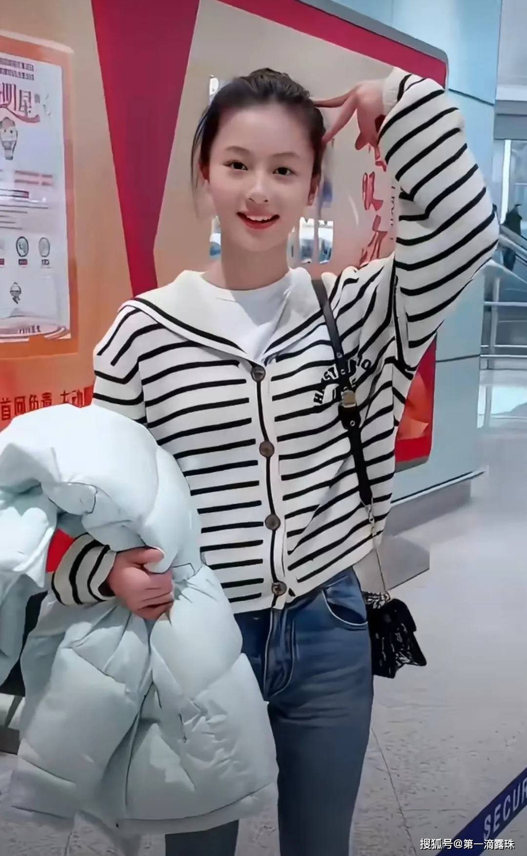 先说说最让大家关注的机场首秀。1月7日,七七首次在机场被粉丝接机,这段互动视频很快就冲上了热搜。视频里的她穿着简约的休闲装,满脸的胶原蛋白,五官精致得不像话,头小脸小的优势特别明显。