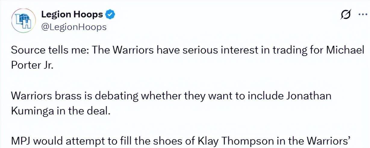 这笔交易要是真成了,勇士的进攻画面简直美得不敢想。 想象一下,库里在外线被包夹,球分出来,接球的是身高2米08、出手点极高的小波特,防守人扑都扑不到,唰的一声,三分命中。 这场景,是不是有点当年“海啸兄弟”的味道了? 他能极大地丰富勇士的战术板,给库里创造出更舒适的操作空间。 而且他的合同和库里、格林一样,都在2027年到期,阵容结构上很整齐。