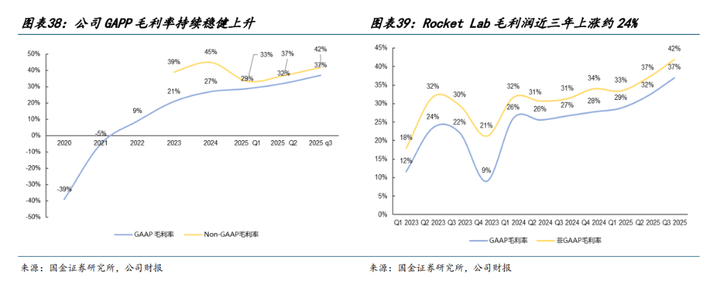数据验证了战略转型的成功。公司营收从2020年的3516万美元激增至2024年的4.36亿美元,五年增长超10倍。更关键的是盈利质量的改善,GAAP毛利率在两年半内翻倍,从11.6%修复至2025年Q3的37.0%。这得益于发射复用技术的成熟和垂直整合带来的BOM成本下降。