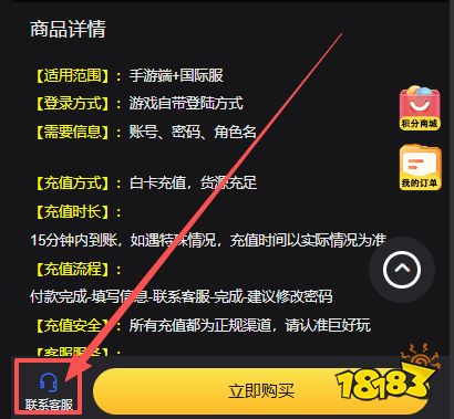 第四步:进入充值页面,在充值前,请玩家下拉充值页面,仔细阅读充值说明,根据自己的需要,选择充值方式。