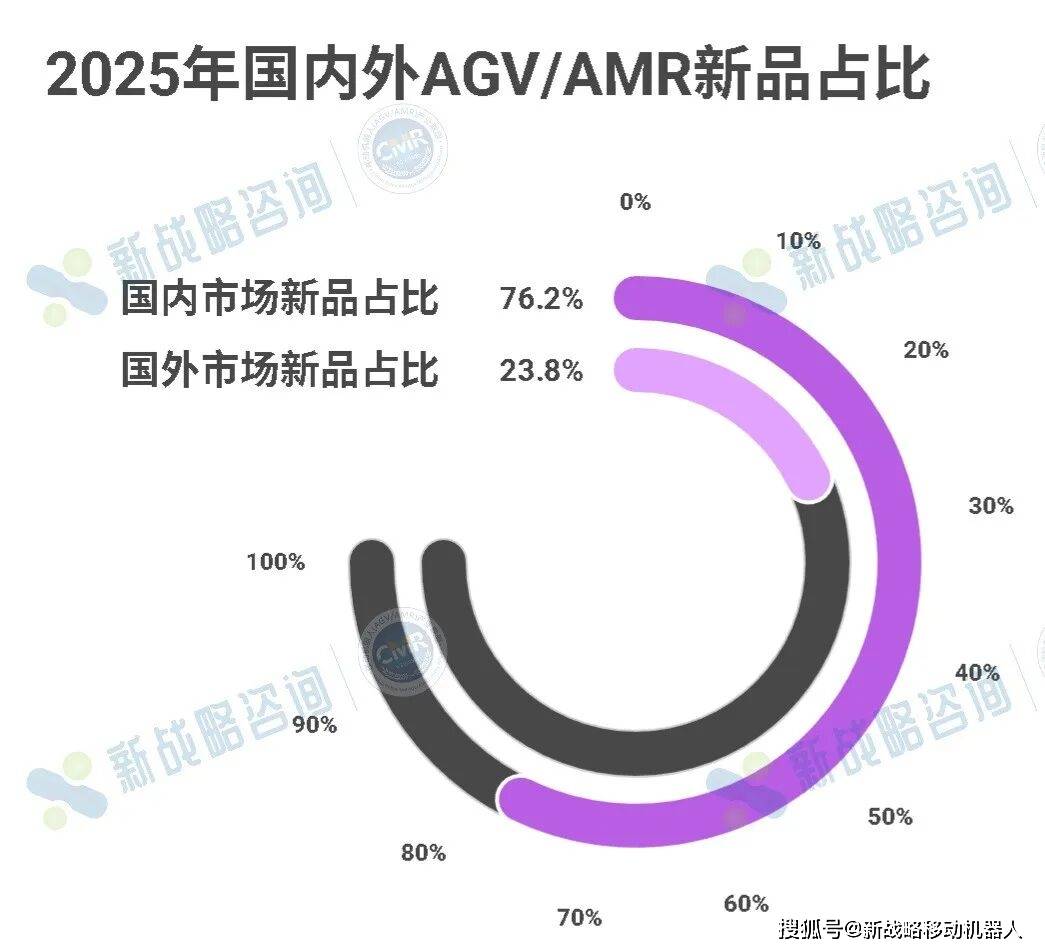 将视角从第四季度拉回全年,根据CMR产业联盟数据、新战略移动机器人产业研究所不完全统计,2025年全年国内外AGV/AMR企业共发布126款移动机器人新品。其中,国内市场推出96款,占比约76.2%;国外市场为30款,占比约23.8%。国内市场依旧保持着数量优势小火箭转发规则在哪,其背后是更为广泛的应用需求与更高频的场景试错;而国外市场则延续了新品数量相对克制、但单款产品成熟度较高的特点。