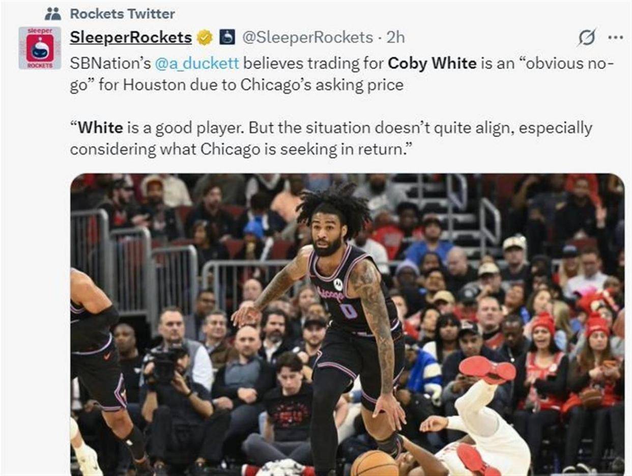 美媒SBN记者在1月31日的报道中也指出,鉴于芝加哥公牛方面提出的要价,休斯顿引进怀特的交易显然是不可行的。怀特的确是一位出色的后卫,但目前他的情况不符合火箭预期,尤其考虑到公牛要求过高的回报。