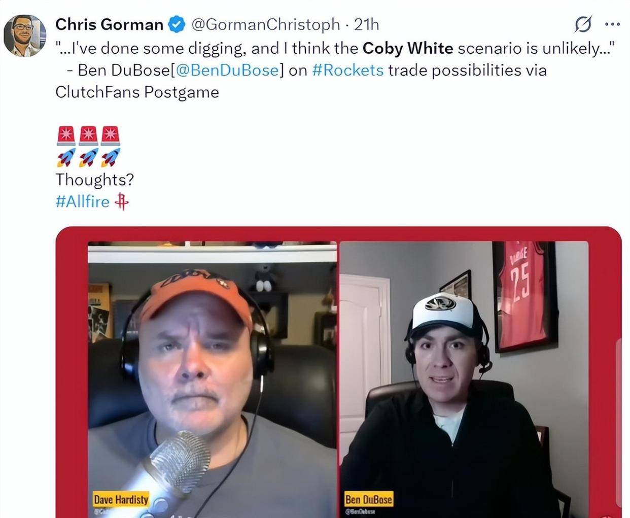 这一消息迅速引发了火箭球迷的热议。不少球迷认为怀特至少能胜任一号位,且他本赛季场均29分钟内可以贡献18.6分3.5篮板4.8助攻的数据,命中率44.1%,三分命中率36.7%。然而,火箭随队记者本·杜博斯在一天前就已透露双方曾进行交易探讨,并在播客中明确表示,由于公牛要价过高,火箭难以匹配,因此交易达成的可能性很低。