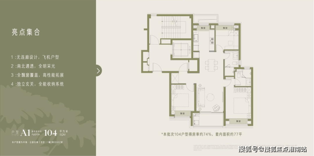 项目户型几乎无连廊设计,有效规避传统连廊户型的采光不足与隐私泄露问题,打造全明通透的飞机户型,得房率与居住舒适度均优于同类型产品。空间设计充分适配改善型家庭的多元需求,最大化引入景观资源与自然采光;三卧室独立分区布局,主卧配备观景飘窗及独立收纳空间,次卧面积可满足儿童房、书房等功能需求,兼顾家庭成长性。