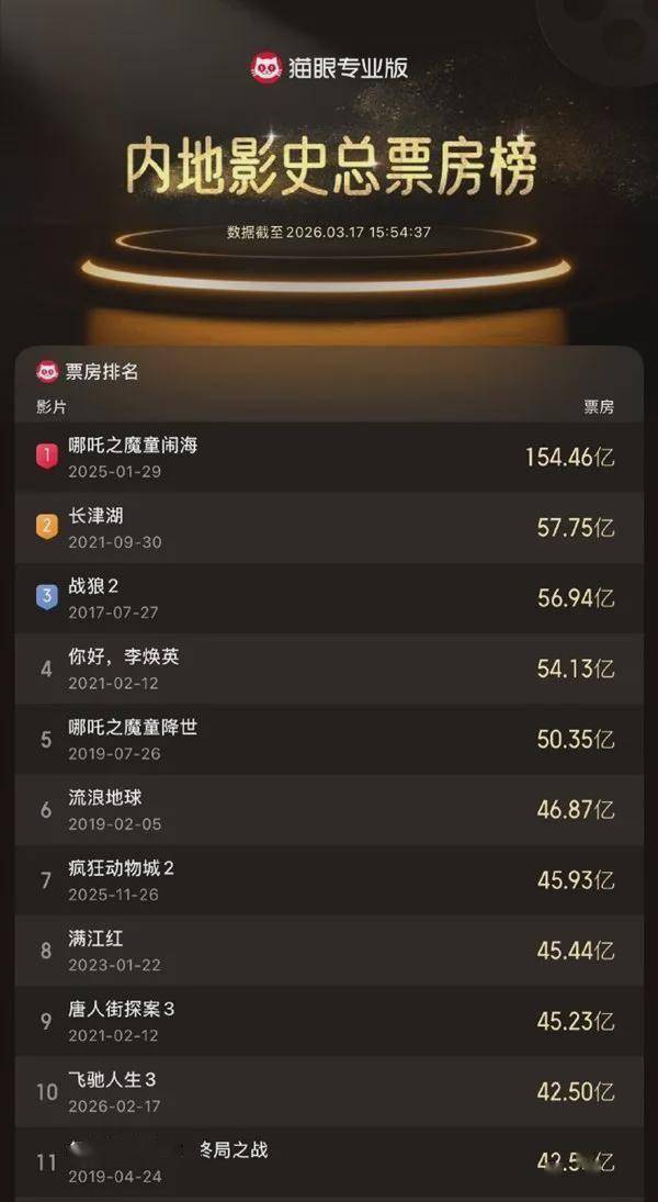 据灯塔专业版,截至3月17日,影片《飞驰人生3》累计票房42.50亿,超过《复仇者联盟4:终局之战》,进入中国影史票房榜TOP10。(大皖新闻)