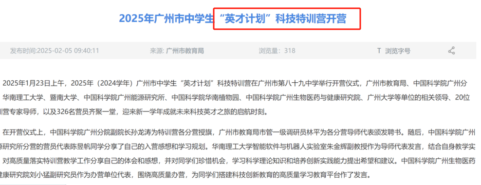 初中小学阶段,就拿广州来说,顶尖名校广州大学附属中学今年就在高中阶段专门为科创方向扩招,设立了面向科技特长生的特色项目。