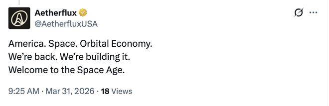 正如Aetherflux在官方社交媒体上那段极具野心的宣告,美国、太空、轨道经济,我们回来了,我们正在建设它,欢迎来到太空时代。
