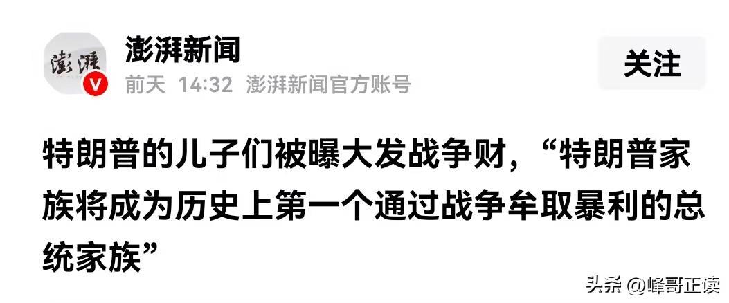 澎湃新闻:特朗普的儿子们被曝大发战争财,“特朗普家族将成为历史上第一个通过战争牟取暴利的总统家族”