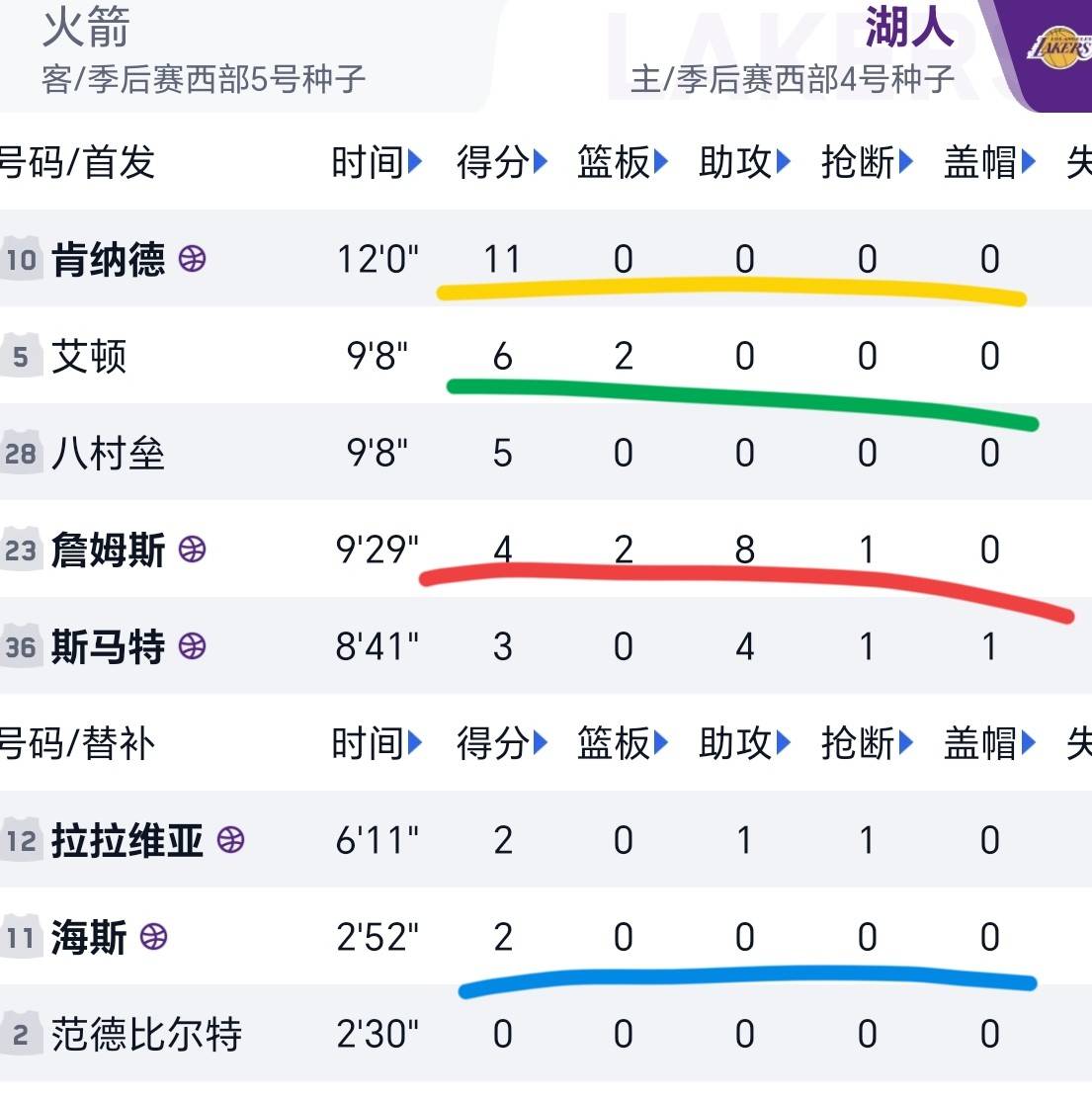 今天湖人主场打火箭,G1就来了个开门红。东契奇和里夫斯没打,杜兰特也因膝盖小伤歇了,两边主力都缺人。可湖人线次助攻,创了自己季后赛单节新高。这数据看着就离谱,41岁了还能这么控场,服气。