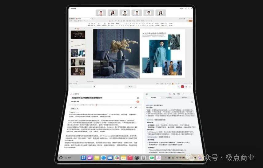 很多商务人士经常需要做会议投屏讨论汇报,但传统PC投屏时容易暴露聊天窗口,也不能收发资料——但从HUAWEI MateBook Fold体验来看,实现“上屏示人、下屏藏私”,两者互不影响,终结了投屏时的隐私焦虑。