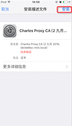 由于是https的请求,需要在手机端安装证书才可以解密请求,charles的证书可通过手机浏览器安装,手机浏览器访问,点继续访问此网站,会提示安装证书。